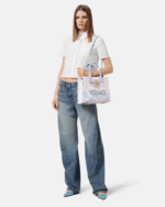 Crafted from canvas with leather top handles, this tote bag features an all-over Medusa Cameo print and is detailed with a front Medusa hardware. It has two zipped pockets, and a leather protector strap.